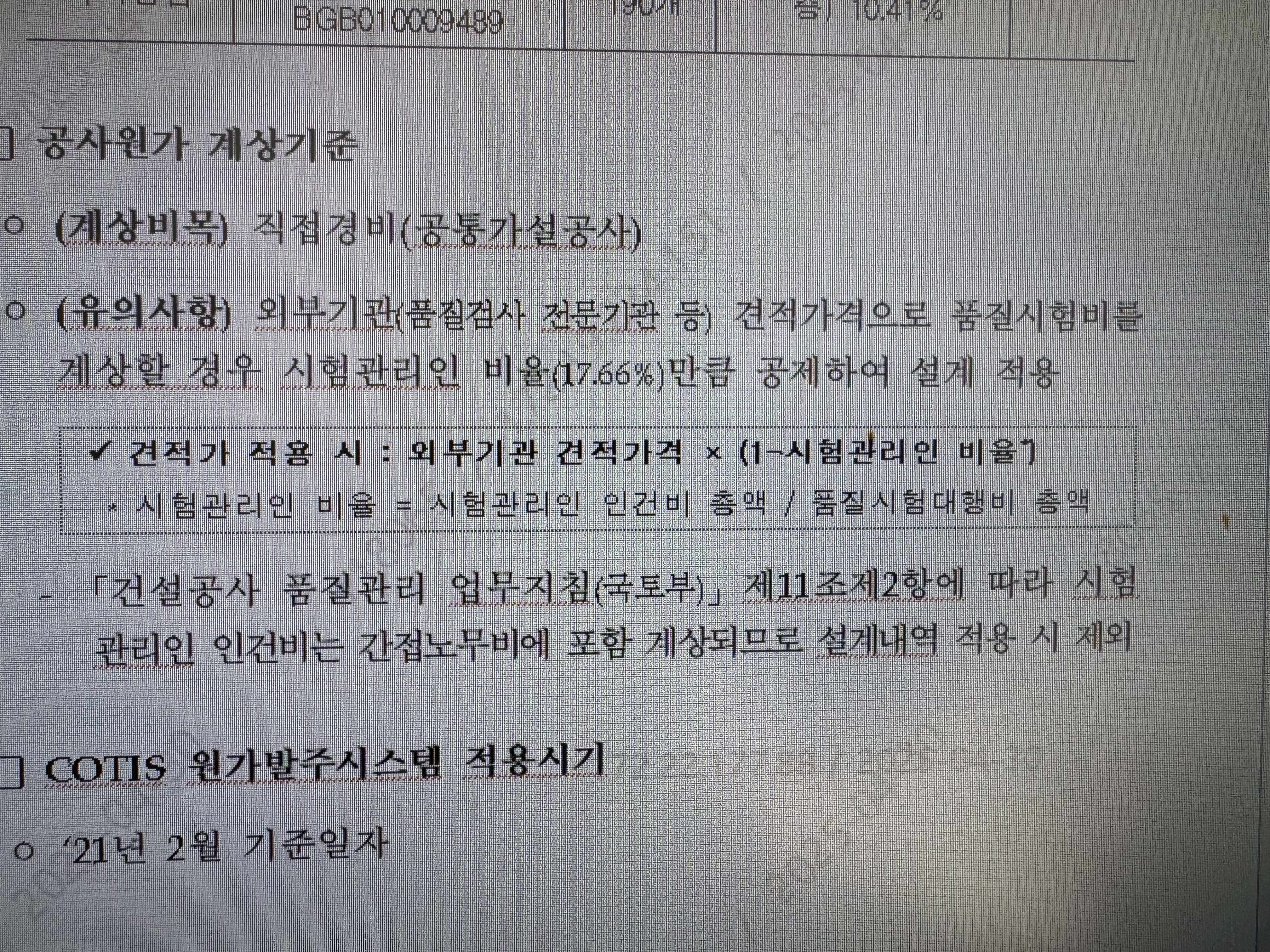 품질시험계획서 제출시, 누락 항목 없이 제출하는 것이 관건임 : 혹시 누락이 되었다면 개정해서 재 제출해야지 품질관리비 집행 가능^^
