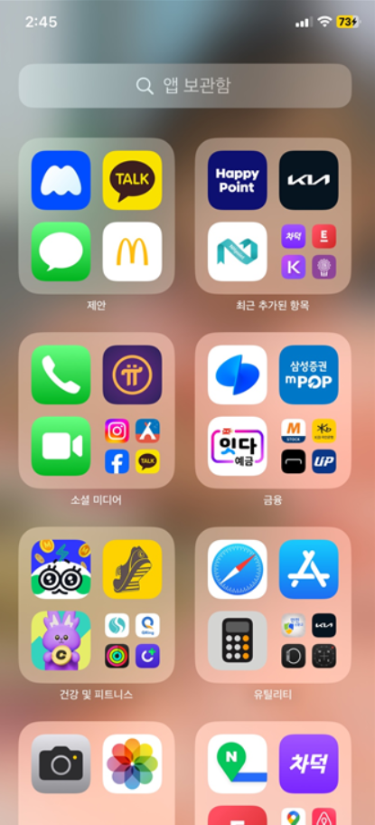 1. 아이폰 활성화 창에서 오른쪽에서 왼쪽으로 책장을 넘기면 제일 오른쪽에 앱 보관함 검색창이 나옵니다.