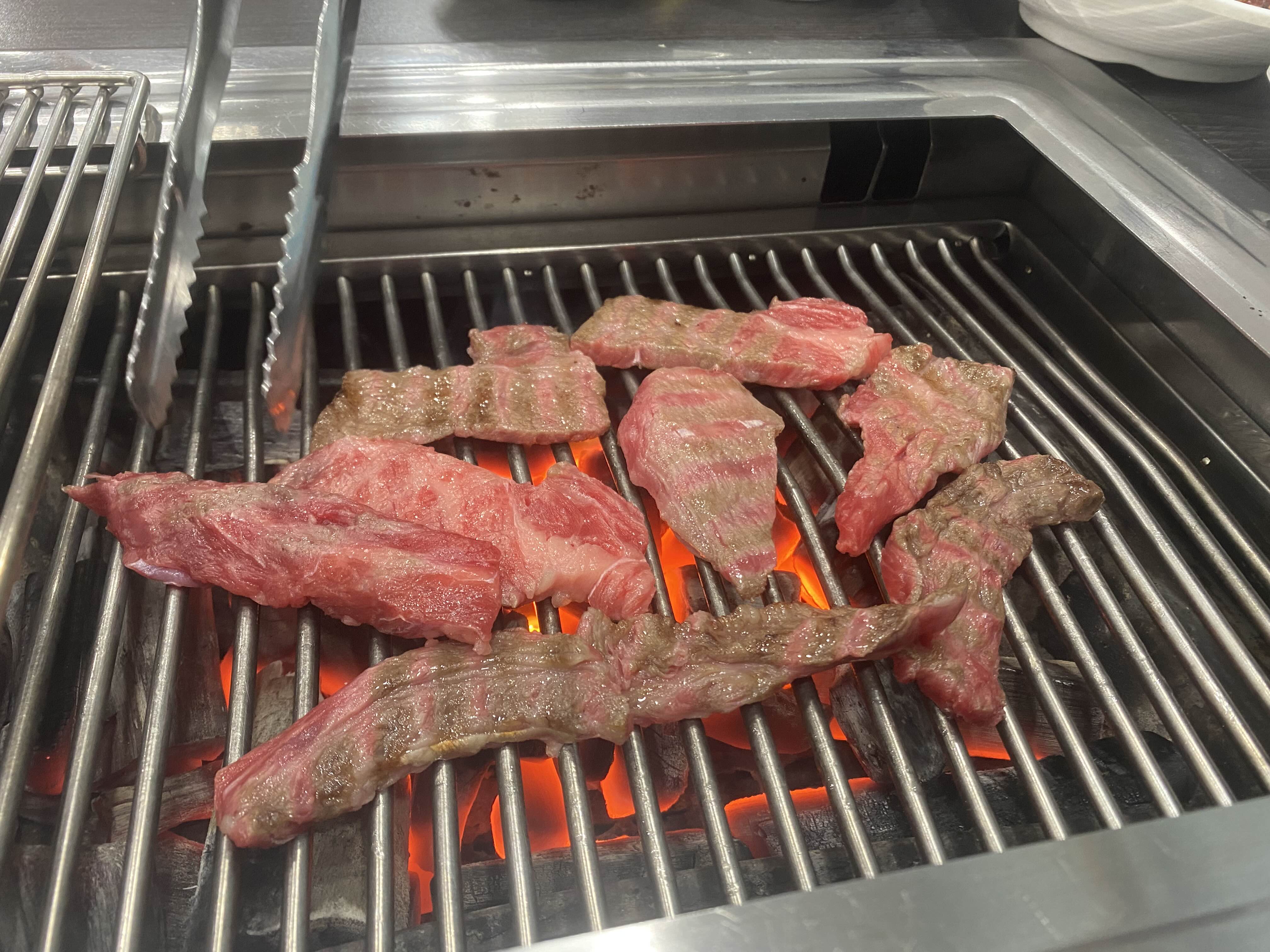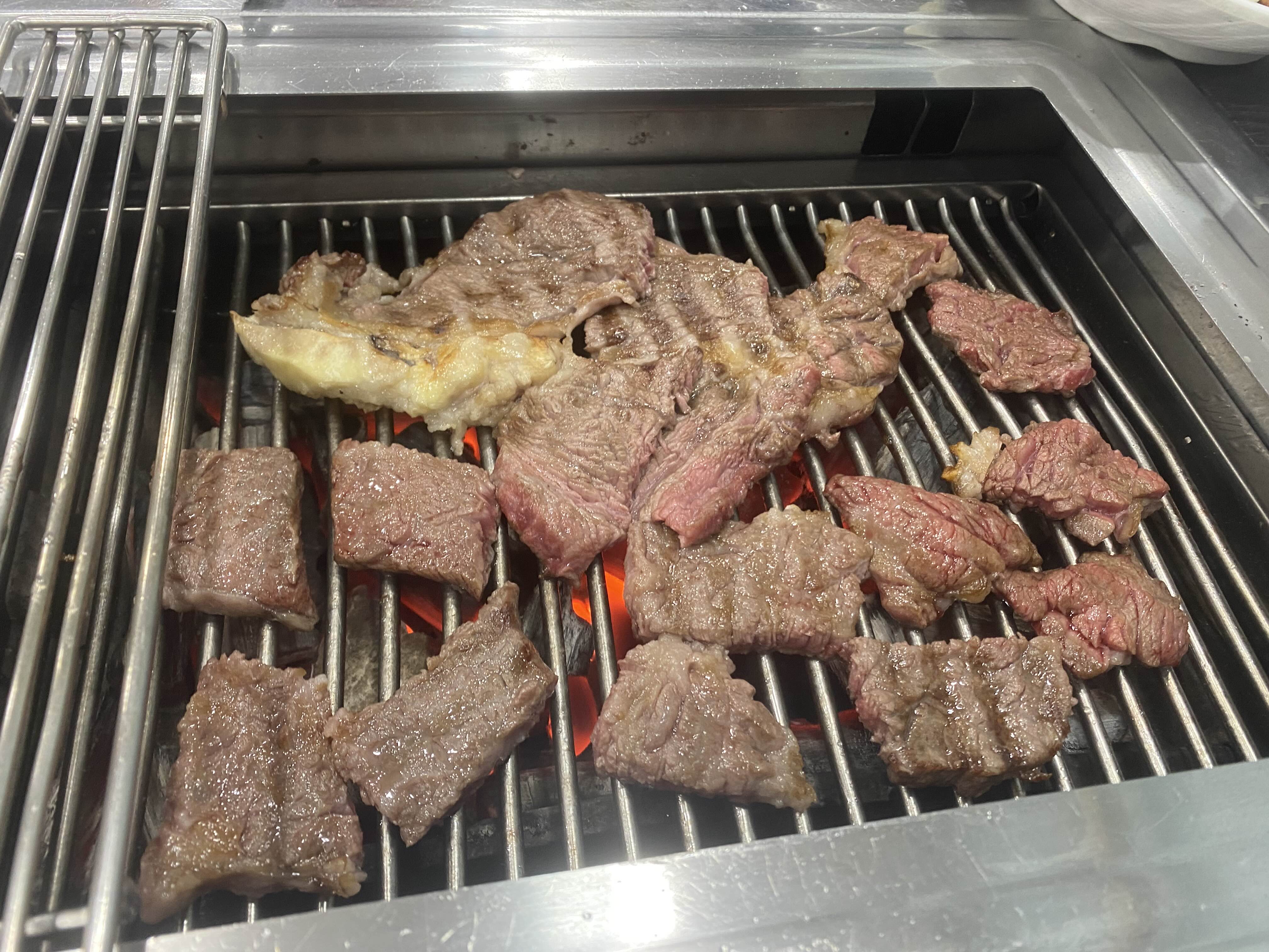 갈비살은 때깔이 살아있습니다. 불만 살짝 가져다데고 드셔보세요.